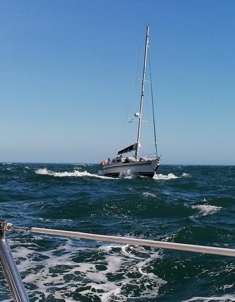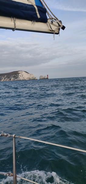It's September 2019 I had my brother as crew and the weather was good. Jean Clair and Pilli set off first with Sea Squared following behind when emergency altenator repairs were completed. Jean Clair left Portland with Pilli following close behind. It was a beautiful sunny day but not a lot of wind so it wasn't long before we started the engine and motor sailed. As we were approaching The Needles the wind perked up and we turned the engine off and progressed at a rather leisurly 4 knots. A good time for a drink and lunch. I had prepared lasagne for lunch the day before and we reheated it and had a delicious lunch with a drop of wine to wash it down.